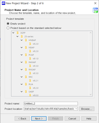 -> add를 눌러 asn.1 파일 추가 -> finish