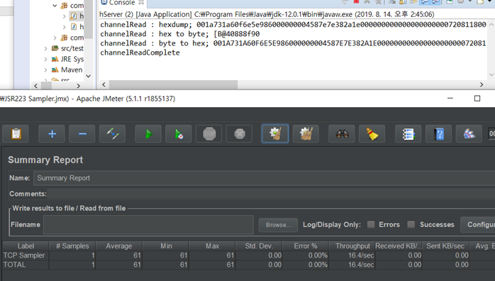 Netty 서버 실행 -> Jmeter 데이터 전송 -> 데이터 전송 확인
