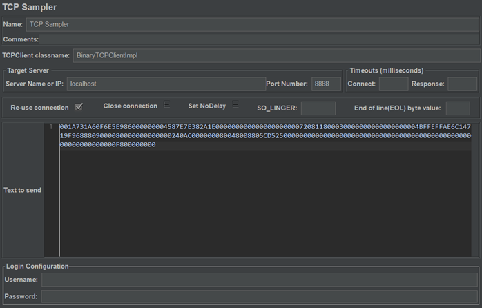 TCPClient classname 에 BinaryTCPClientImpl 입력 -> 전송할 IP, 포터 번호 입력 -> 전송할 hexString 입력(공백이 없어야 함)