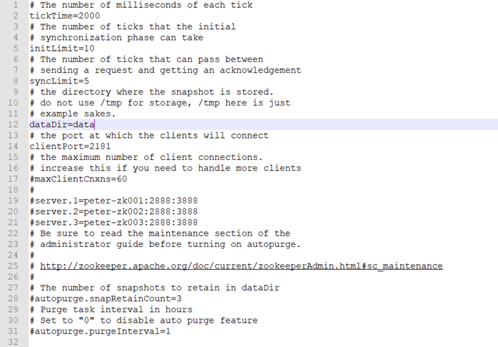 zoo.cfg를 notepad++ 나 메모장 같은 텍스트 편집기를 이용하여 오픈 ->