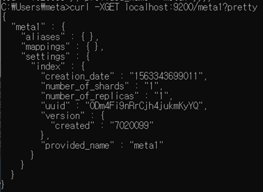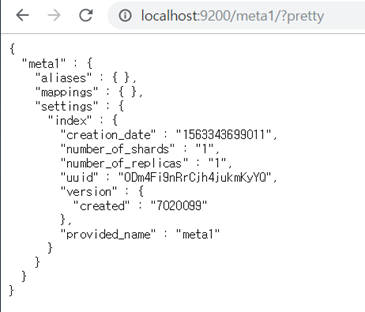 curl –XGET localhost:9200/meta1?pretty 입력