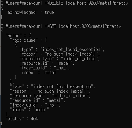 curl -XDELETE localhost:9200/meta1?pretty 입력
